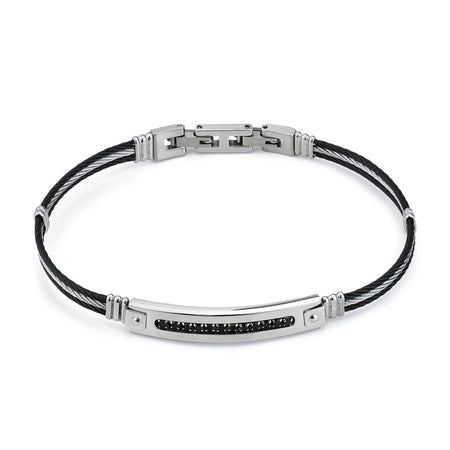 BOCCADAMO MAN Bracciale Uomo Targa Zirconi neri in acciaio Cordini neri e Cordino Rodio